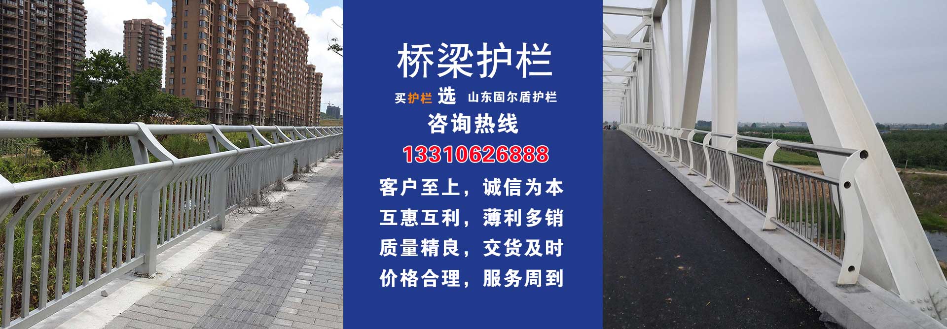 山东固尔盾金属制品有限公司是一家专业经营:桥梁护栏、道路护栏、河道护栏、景观护栏、防撞护栏、灯光护栏、不锈钢护栏、不锈钢复合管、钢板立柱等产品,公司成立以来一直把确保了产品质量作为重中之重,赢得了客户的信赖。我公司始终坚持以更优质的产品,更好地服务的经营理念,为广大用户服务,并已建立了...